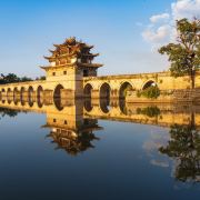石屏县位于云南省南部、红河州西北部,石屏古城明代时建城,四门为,东名迎恩,西名通贡,北名拱辰,南名钟秀。400年前的周长748丈,高两丈、厚两丈的砖城,现仅存更名为“云台”的南城门。