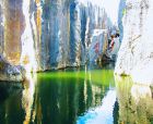 乃古石林位于大小石林以北13公里处,也叫新石林或摩寨石林,石林景观、白云湖、石峰山、幽谷仙瀑组成。与大小石林相比,这里又是另外一种风格。这里的峰林整体呈灰黑色,石柱高大密集,有城堡状、塔状、蘑菇状等,古朴粗犷的怪石如浪涛般冲天而起,气势磅礴,漫步黑色的峰林中,仿佛进入荒蛮世界。