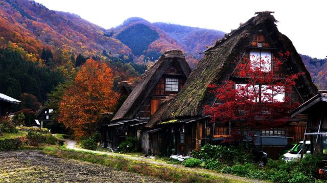 5分 超棒一个偏远的小山村,却是无数人向往的旅游胜地。白川乡合掌村位于日本岐阜县西北部白山山麓,这里群山环抱,阡陌纵横,清澈河流穿村而过,秋日山川五彩缤纷,静美如世外桃源。