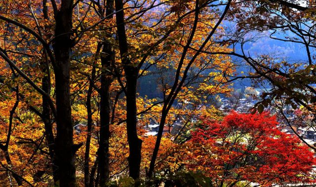 5分 超棒【景色】白川乡:整个村子红叶都是零星分布,目前最好看的一颗红叶是本觉寺门口,明善寺旁边有颗银杏树很大很黄。山坡上有那种暗红色的树很多,颜色好看。