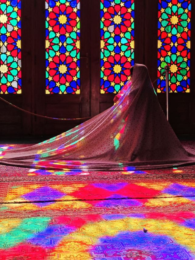 也许你看过这样一张照片,在一座幽暗的寺庙内,阳光透过美丽的花窗斜射到地毯上,形成了万花筒般的绚丽光影,这般绚丽的光影将周围的色彩都变成了粉色,这便是莫克清真寺。