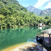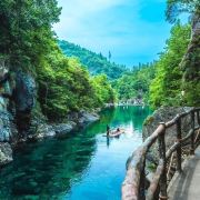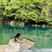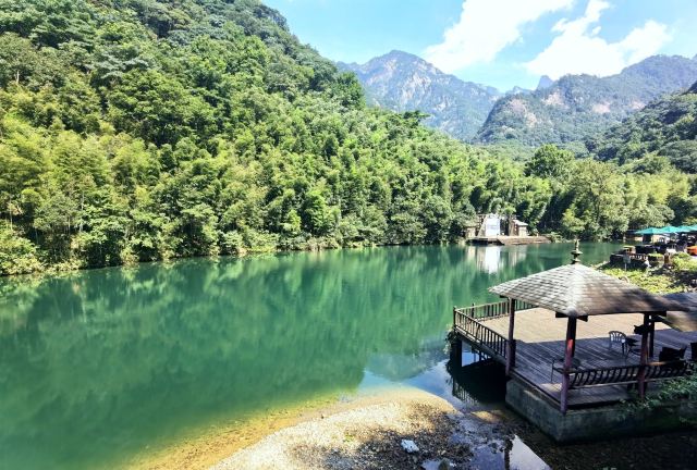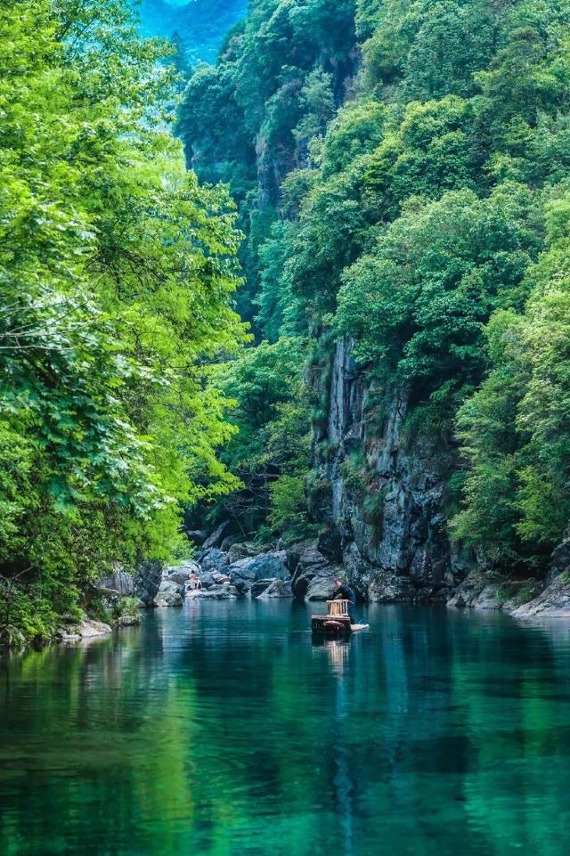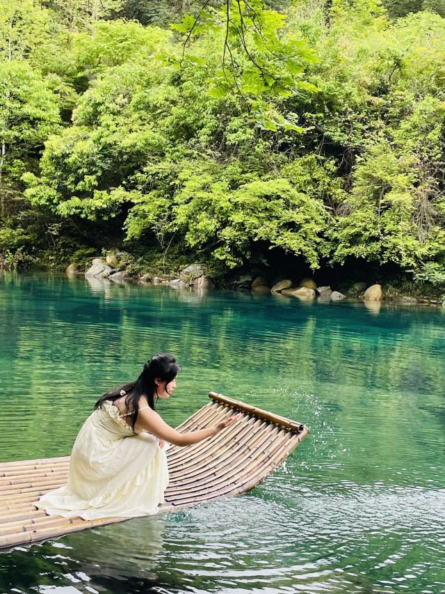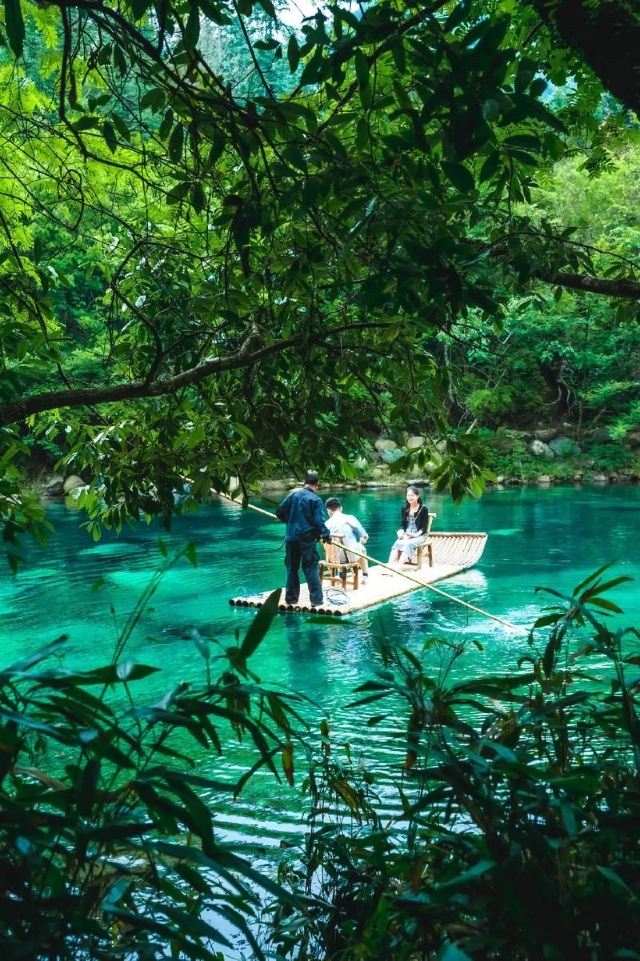 水色绝美:清澈见底的碧绿潭水倒映两岸苍翠,竹筏游览时可沉浸式感受山水交融的静谧之美1。
