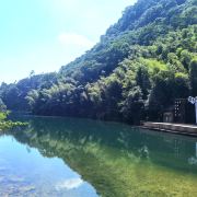 走进景区,需要从游客服务中心做景交车到入口处,在入口处会遇到两个岔路口,直行的是严家古村方向,左边的是龙门潭方向,看了景区导览图,果断选择走左边,因为左边的景色更佳,虽然直行的四叠泉瀑布也很美,但是需要穿过一个村子,会走一截路,由于我急着看美景就走了左边。