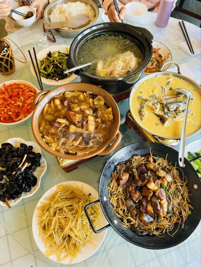 暮色漫过四叠瀑布时,归鸟驮着晚霞掠过林梢。山脚下的农家升起炊烟,新焙的野茶香混着柴火气息飘来。回望牯牛群峰,暮霭中轮廓愈显苍茫,恍若一头青牛正俯首畅饮春溪。