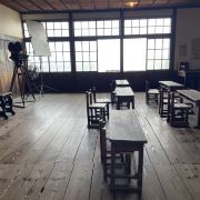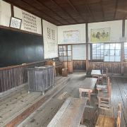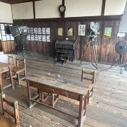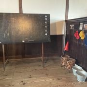 图中的岬之分教室不仅是明治时期实际被使用的苗羽小学的田浦分校,也是电影的外景地。教室里的课桌、黑板等都保留着当时现场的原状。一年教室隔壁还有另外两间,一间是二三四年级的教室,展览着木下惠介导演的海报,另外一间是电影中出现过的教职员办公室。游客可以在这里的小本子上留言,从昭和到平成跨越了半个世纪的留言本都被收录在书架上,而现在已经迈入令和时代啦。