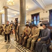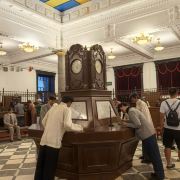 沈阳金融博物馆位于沈阳市区、张学良旧居的东面,是一座宏伟的仿罗马式建筑,边业银行的旧址。博物馆内陈列了中国古代各种货币和世界各国的货币,展示了东北金融业的发展历程,还以人物蜡像再现了银行营业厅当年的繁荣景象,十分有趣。走进博物馆,仿佛穿越到了二十世纪30时代,只见大厅内都是人,有的在交谈、有的在存钱,一派热闹景象。这些都是穿戴着民国时期服装的蜡像人物,反映了当年银行营业时的场景,栩栩如生。你也可以充当“人群”之的一员,拍照合影。穿过大厅开始进入总裁办公室复原陈列室,从这里开始依次进入每个展厅参观。各个展厅分别陈列了战国时代、清代、民国时期和现代的各种货币实物,还可以看到世界各国货币、以及专门的金属钱币陈列,同时还有人民币及假币展览,教你怎么识别假币。而后一个展厅被布置成模拟的证券交易所,让你体验置身于金融中心的感觉。除了货币展示,各个展厅还以丰富的图片和文字让你了解到东北金融业、中国证券业的发展历程。展厅顺序基本都为单向行走,建筑内部格局有点复杂,不过好在展厅间都有方向标识,也都有工作人员可帮助指引。