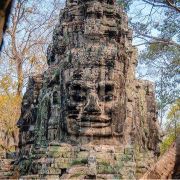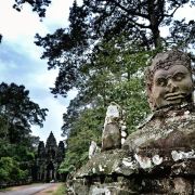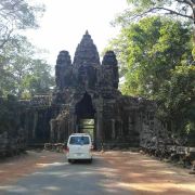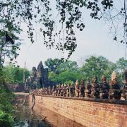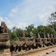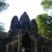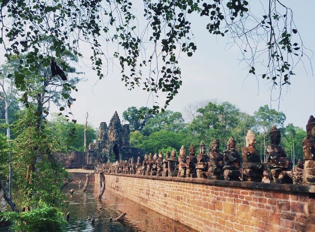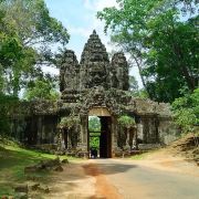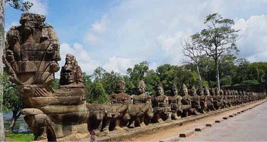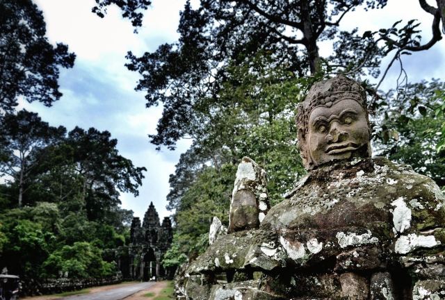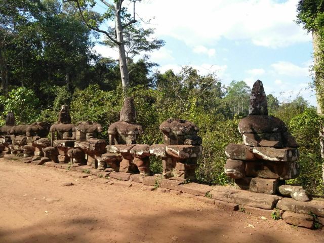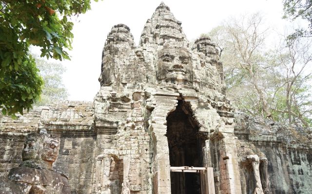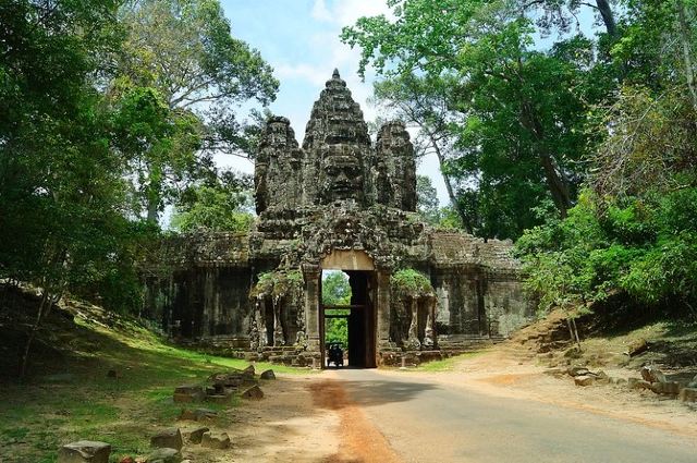 进入吴哥城有五个门,胜利门是吴哥城的东北门,是通向皇家广场的第二大常用门,也是出征将士得胜回朝走的门,相当于北京的德胜门。从这个门进出,游客可以看到许多典型的雕塑,爬上胜利门可以看到两侧墙壁上的雕像。