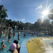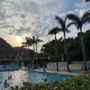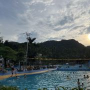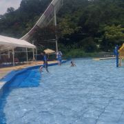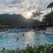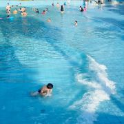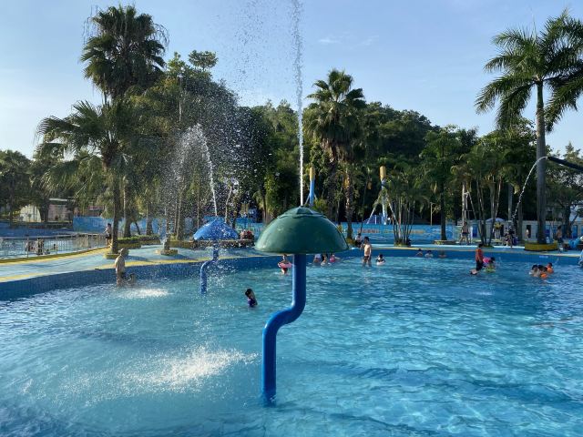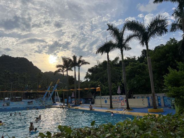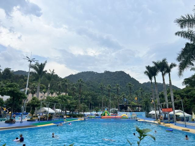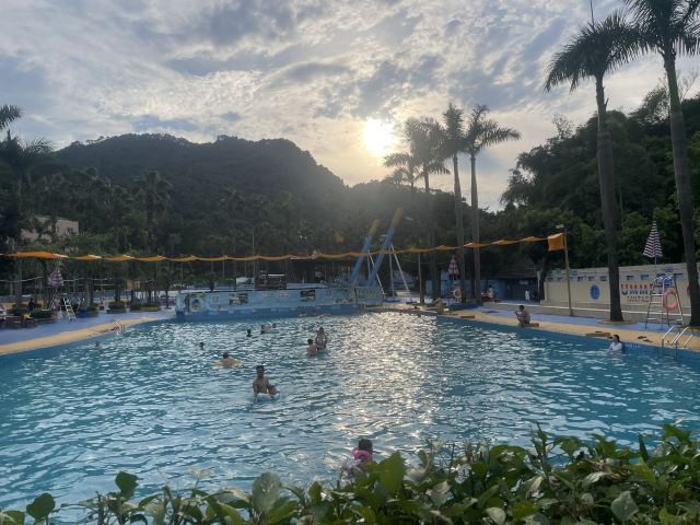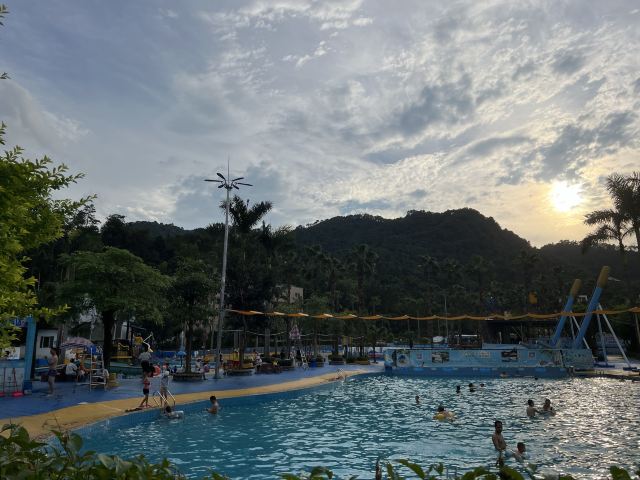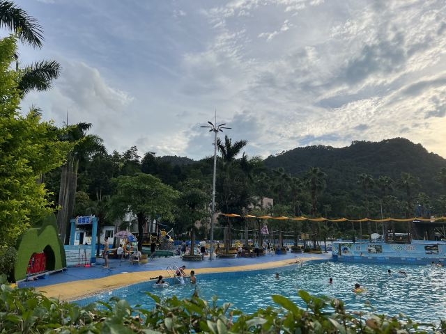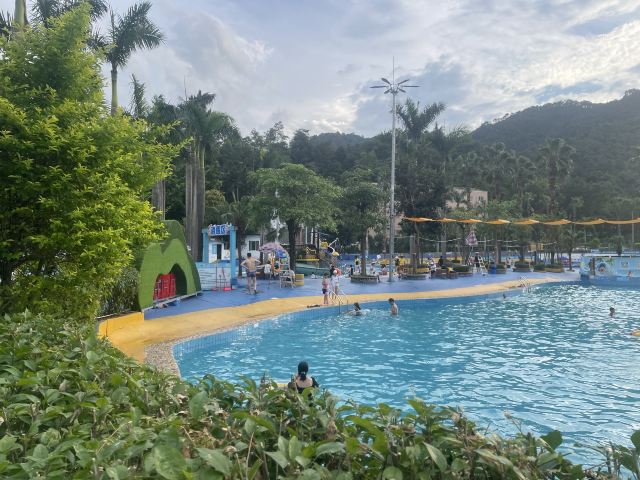 4分 满意性价比挺高的一个地方,水是附近山上的溪水,水质蛮干净的,但场地设施有待改善,淋浴和更衣室条件有限。管理上也不行,很多人没有穿泳衣就下水了,这样非常不好。儿童主要游乐区主要有三个,加勒比游乐区,造浪池和滑梯池。成人有一个1.5米深泳池,但没有分区和拉线,所以只能是戏水,如果成人想玩更刺激一些的项目需要另外付费30元。反正随便玩玩要求不高可以的。
