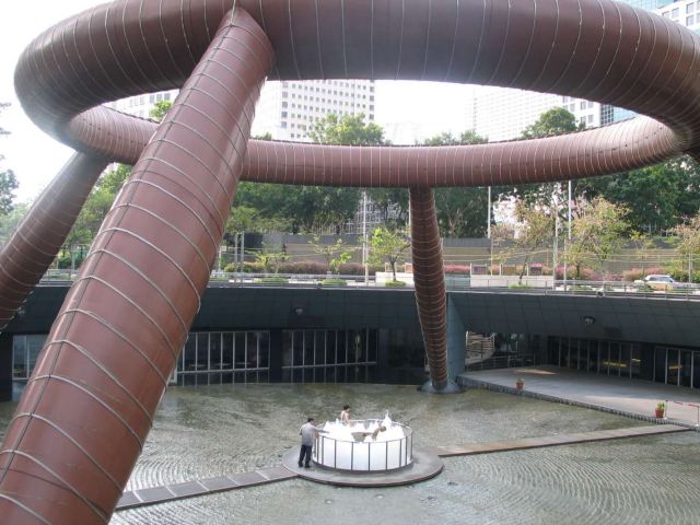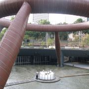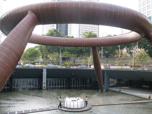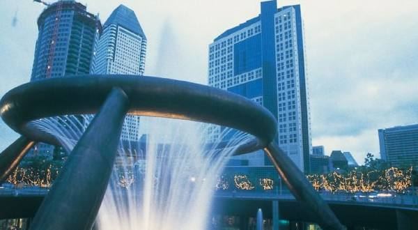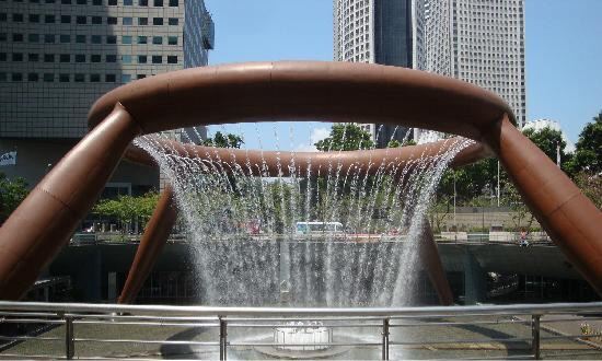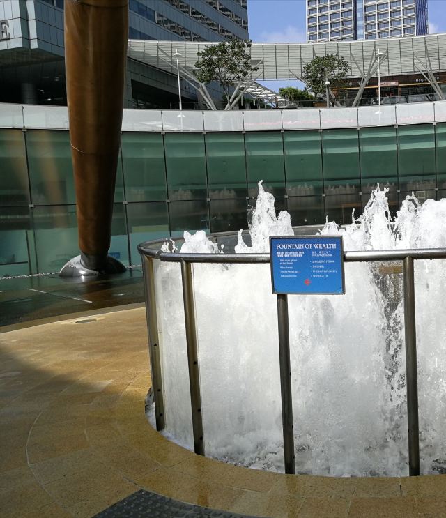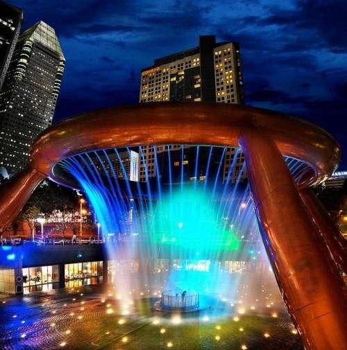 财富喷泉是新加坡的标志性建筑。喷泉设计取意于佛教和印度教的曼陀罗思想,以巨环的坛场象征完整,是无尽的力量源泉,也传递了修建者渴望各种族友好相处的愿望。