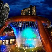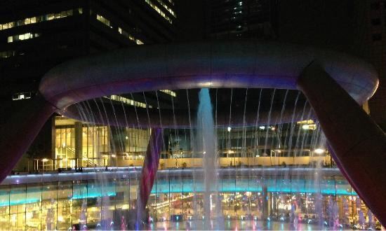 5分 超棒在新加坡新达成五座楼之间有个超大的音乐喷泉。每天晚上七点半开始表演。 喷泉有激光打在上面。很有意思。 表演之前只有中间的小泉喷水。 过去绕三圈,会有好运气。 去参观新达成,一定要去看看音乐喷泉。 那附近还有很多好吃的。