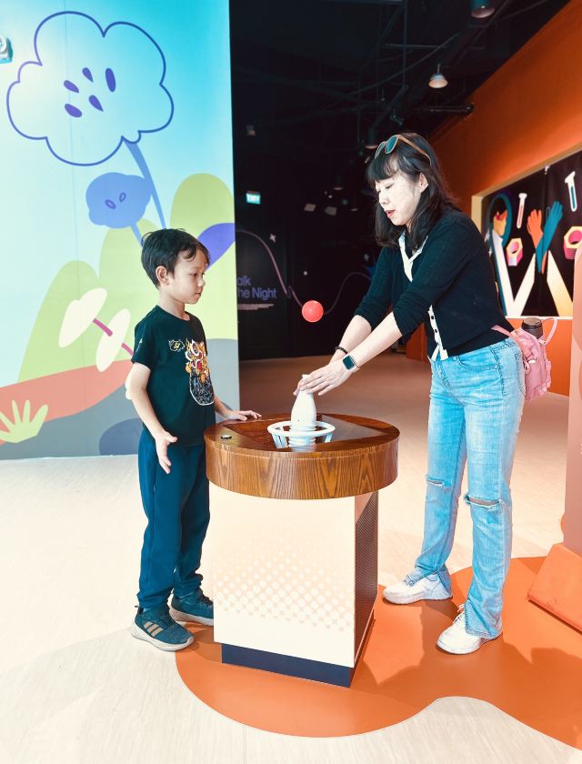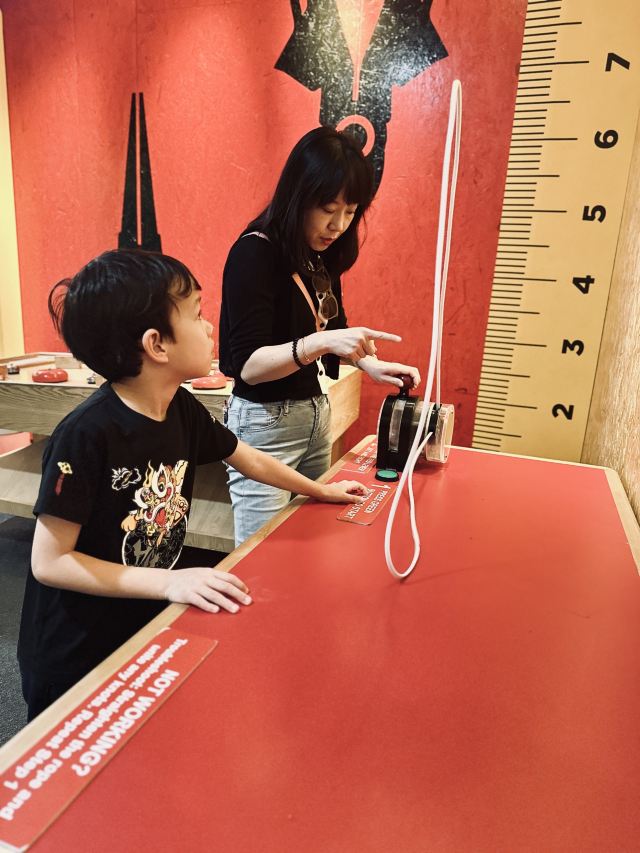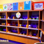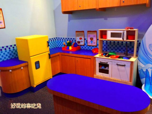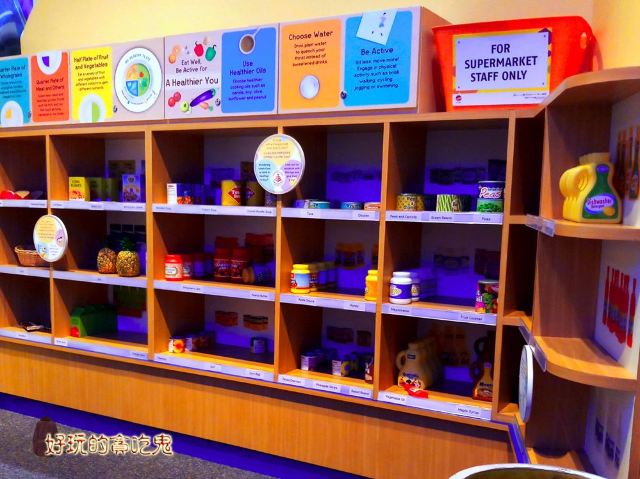 比如:Dino Pit (恐龙化石坑)就让小朋友在模拟的恐龙化石坑,在沙地上通过挑选考古发掘所需的‘工具’体验并感受考古,发掘的兴趣与乐趣,Flight and Space(飞行和太空),一架模拟的穿梭机驾驶舱可以让小朋友体验驾驶太空船,Supermarket(超市)里先从售卖的‘商品’购买所需的材料,并在‘付款’后,‘带回家’,并在一个模拟的小厨房让小朋友自己‘当家做主’,把到超市购买营养食物拿来烹煮,而我们爸妈就等着品尝她努力的成果(美味的‘佳肴’)等等。