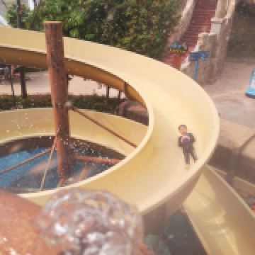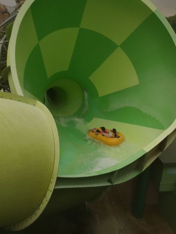 螺旋滑道也极具特色,沿着惊险刺激的滑水隧道疾速而下,感受高速的螺旋回转,最后落入冰凉水花之中,惊险之极又令人兴奋无比!