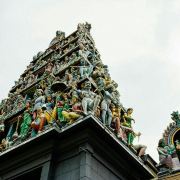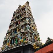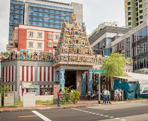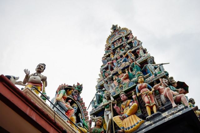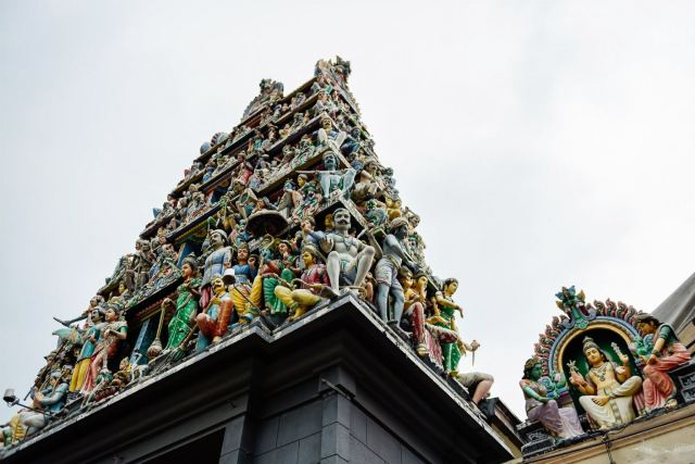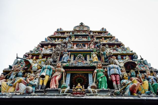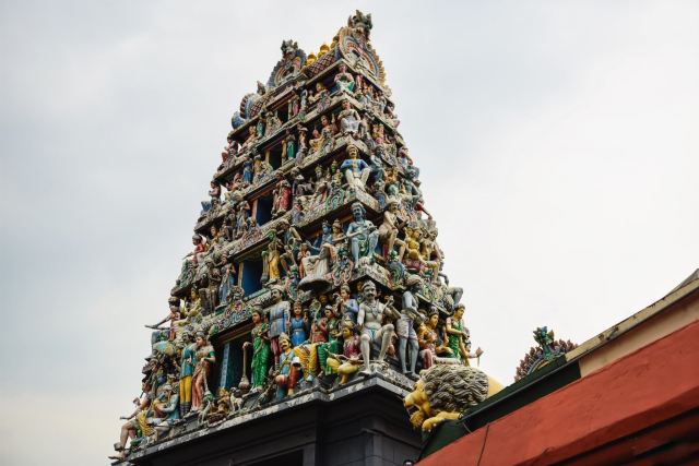 马里安曼兴都庙坐落在桥南路上,是新加坡古老的印度教寺院,它的历史可以追溯到1827年。寺庙大门雕刻着色彩艳丽的印度教诸神、动物、人物等,门内的高塔上,有各种神灵和圣兽栩栩如生的雕像。寺庙香火鼎盛,一年祭祀不断。