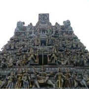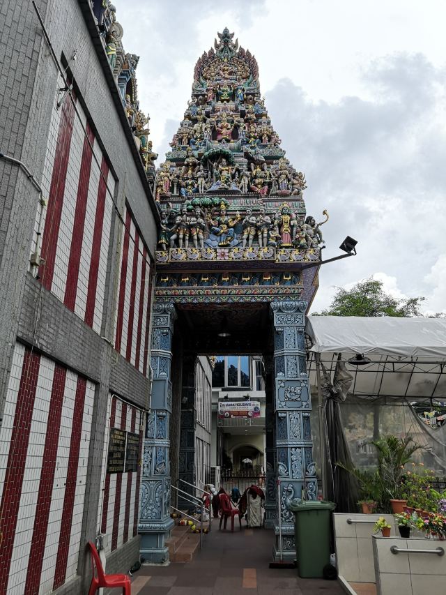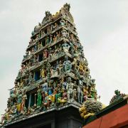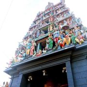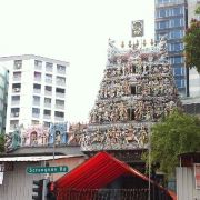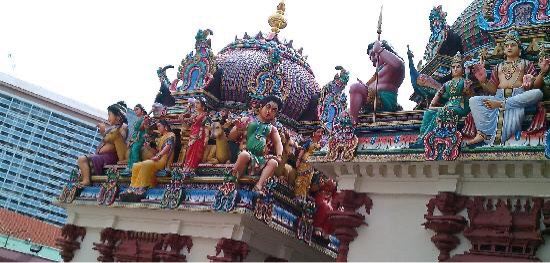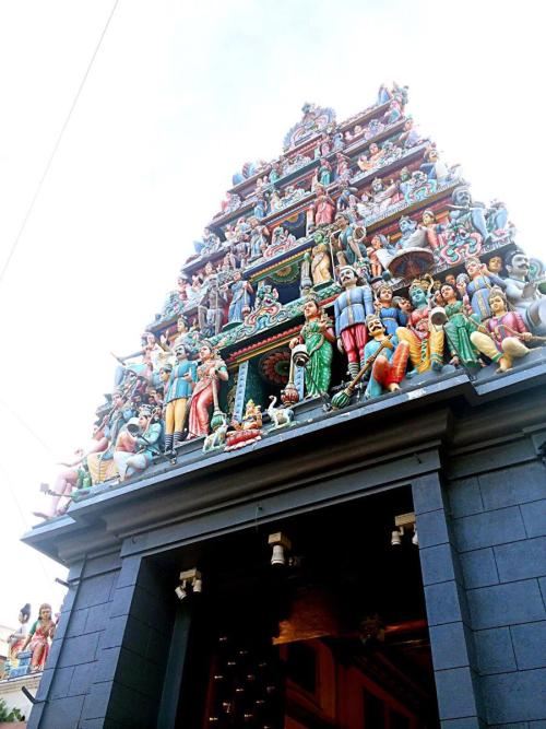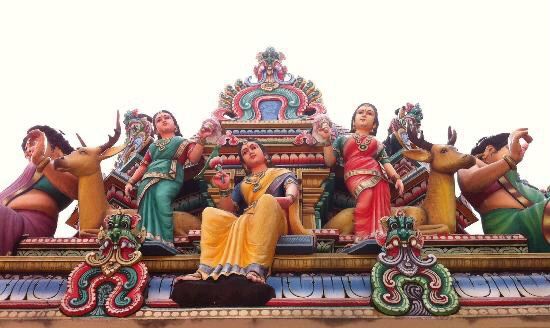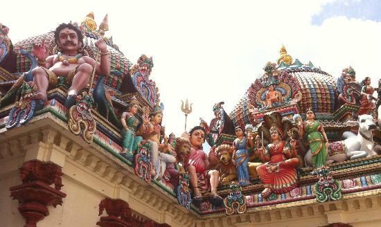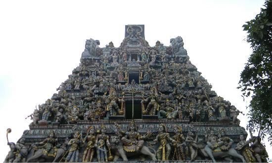 4分 满意这是一座位于“小印度”(Small India)地区中心的印度教寺庙。这座寺庙是为了供奉印度教女神时母(Kali),她是夏克提(Shakti)的残忍化身,也是湿婆神(Shiva)的妻子雪山神女(Parvati)。 这座寺庙建于1881年,是按照南印度泰米尔风格建造的,这在印度的泰米尔纳德邦地区很常见。寺庙里矗立着一尊时母(Kali)的雕像,她有着各种姿态的胳膊和腿,每一只手里都握着武器。在主祭坛上有一尊黑色的时母雕像,两侧是她的儿子们,象头神(Ganesha)和骑着孔雀的婴儿神室建陀(Skanda)。寺庙内禁止拍照。维拉玛卡里雅曼兴都庙是新加坡推介的景点之一, 最特别的是庙宇塔顶上有一层层堆高的印度神像, 而且也涂上了不同的色彩. 大致跟马来西亚的寺庙差不多. 庙内很很多印度人在参拜. 如果要入内, 必须要脱鞋, 因此就没有进去看了.