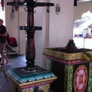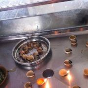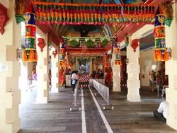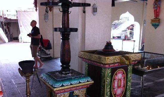 在这里,游客还能看到信徒们在门口附近的铝圈中敲开椰子,这象征着敲开信徒们的灵魂,而白色的椰心则显示了虔诚信徒们纯洁善良的内心。