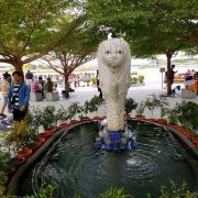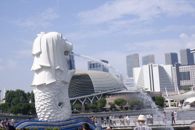 据当地人介绍,新加坡一共有4座鱼尾狮,公园里面的是妈妈和一个宝宝,在岛上那个是爸爸,另外还有一个宝宝在花芭山上。古代苏门答腊的一位王子曾在当地看到一只灵兽,很像狮子,于是他便把小岛命名为狮子城,而鱼尾狮的鱼尾造型则代表过去新加坡曾是一个渔港。