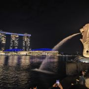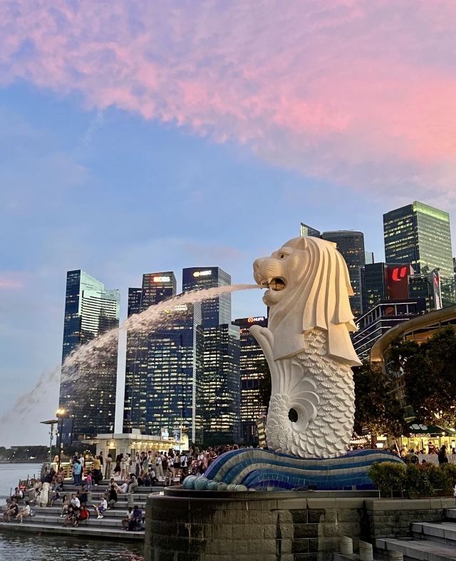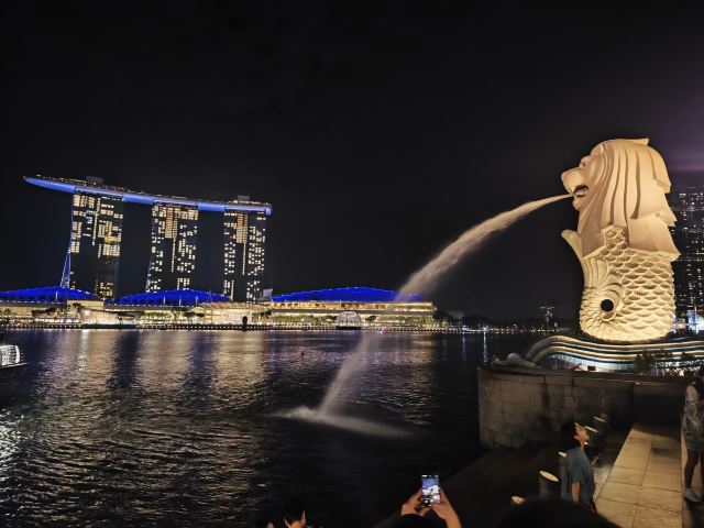 鱼尾狮公园白天和晚上是两种味道,建议接近傍晚时分过来,这样既可以看到白天的样子,又可以接下去欣赏夜晚的美景,周边华灯初上,新加坡美丽的夜景都能看见。