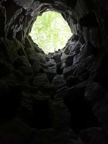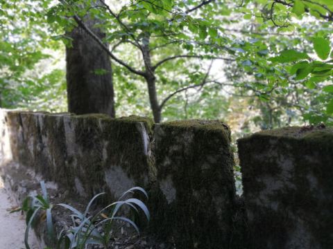 庄园的中间有座弧形的小城墙,城墙上雕有许多神物,走进城墙,穿过一个十多米长的岩洞就会看到一座深约27米的涸井,岩洞尽头的出口刚好是井的中部,井的周围环绕着螺旋楼梯,共有9个旋层,象征着但丁描写的天堂、地狱、炼狱的9重循环。沿着螺旋楼梯便可由井底走到井口,井口外是个花园,一片花花世界,这庄园的构造好似奇幻迷宫般不可思议,因而又得名迷宫花园。
