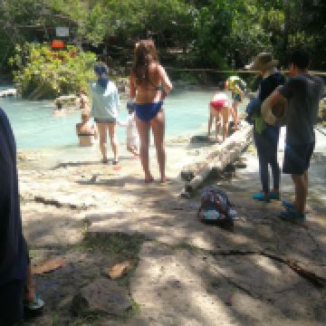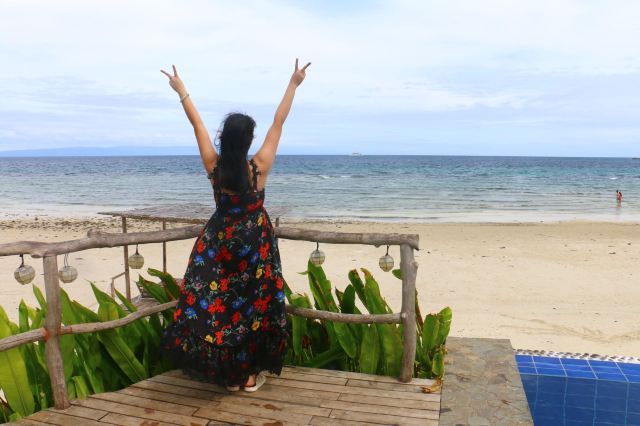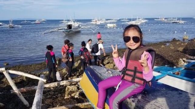 5分 超棒从薄荷岛去锡基霍尔,每天就10点20这一班,2个小时到达。风浪也有点大。40分钟左右到达COCO酒店。8岁儿童付了500P一天,加床含早。送了欢迎饮料西瓜汁。订的兰花行政房三天,是面向海的两层小楼,不过给了底楼,看不见海。离游泳池和餐厅很近。换了衣服就去海边浮潜,海底很平,可以走到很远。有些深深浅浅的沟,里面是大大小小的鱼,海星、海胆、海葵很多。适合怕水又想浮潜星人。酒店消费可以签单,吃要加12[%]服务费,我们除了环岛游的一天都是酒店解决。一直不是海里就是游泳池里泡着。出CoCo门左转,350P一天,要看驾照。油另算,加了两瓶,加满了。最后还剩一半油。逆时针逛岛,先去了老榕树鱼疗,5P一人,停车5P。椰子30P。拉孜修道院,60P一人,顺带上了洗手间。教堂在修不开。然后去了树藤跳水,50P一人,游泳免费。有上下两个,上面的水干净些,哪里付钱只能哪里跳,随便跳几次,也有救生衣出租。然后去撒拉东海滩,沿海路上解决了午餐,比酒店果然便宜很多,味道也还行。