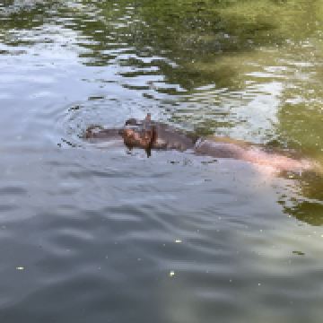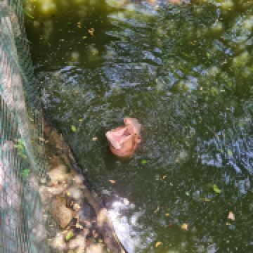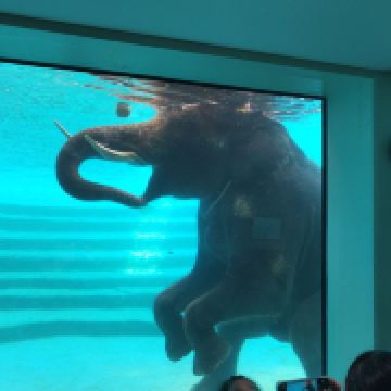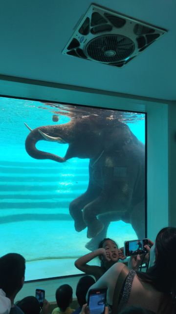 △ 近距离地参观大象游泳表演