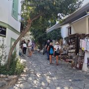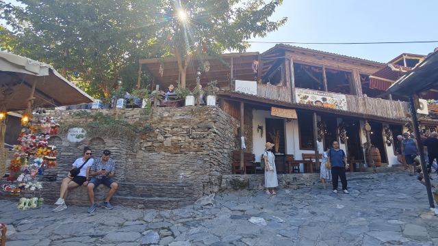 漫步于小镇的后街小巷之中,依然可以看见希腊风格的白色房屋,蓝色窗户和地上被磨得光滑的古老的青石板路。在老旧的门窗和色彩斑斓的石头墙上涂满了岁月的痕迹,家家户户的屋前门外都种满了各种鲜花,当然还有那些无处不在的蓝眼睛友善地注视着你。这里充满了童话色彩,随处可见勃勃生机。小镇比较出名的就是水果酒,沿着小路有很多小酒庄,客人可以品尝不同口味的水果酒,可以带回家做个留念。