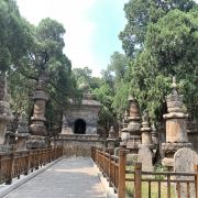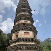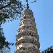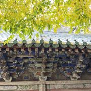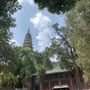 景区的寺门与寺内的殿门是错开的,并没有正对着。进入寺内,走过几个殿之后便到了主殿千佛殿。千佛殿始建于唐朝,正殿中供奉的是通体贴金的“三身佛”,殿内四壁上有成百上千尊木雕小佛,千佛殿也因此而得名。但殿中值得观看的还当属围坐着在四周的40尊泥塑罗汉,他们表情姿态各异,栩栩如生。参观完千佛殿后,绕道寺后的西北面可欣赏辟支塔。这是一个九层楼阁式砖塔,塔基为八角形的,上面刻有古印度孔雀王朝阿育王皈依佛门的浮雕,它也是景区的标志性建筑。