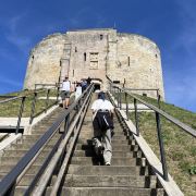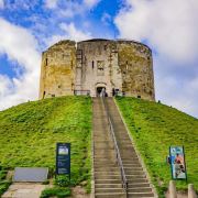 克利福德塔位于小山丘的上方,是约克城堡留存的少数遗迹之一。克利福德塔是按古时罗马人所留下的城堡面貌所修建的,所以不论是拱门还是回廊,都跟罗马斗兽场有些相似。这座塔是曾作为防御工事被使用,后来又用作过监狱和铸币局。目前这里是作为古迹供游客参观。