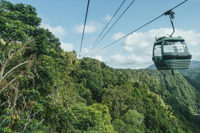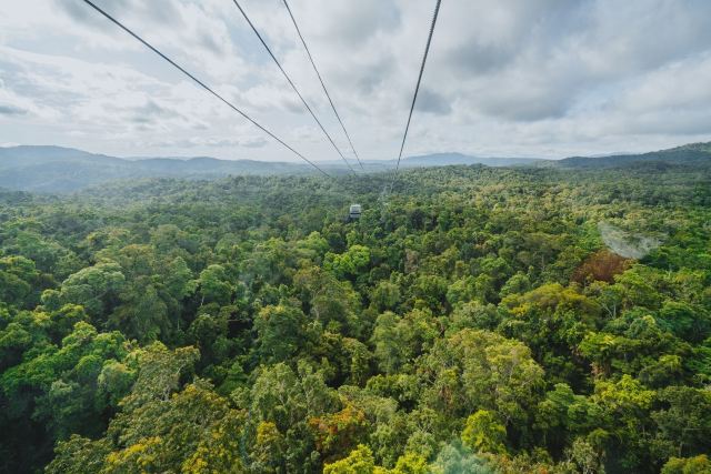 Skyrail热带雨林观光缆车是来凯恩斯必坐的“世界遗产级”热带雨林观光体验。Skyrail热带雨林观光缆车经过的世界自然遗产保护区里生长着的原始雨林是现存世界上古老的热带雨林之一,距今至少有1.5亿年的历史,比亚马逊雨林还要早几千万年。7.5公里的Skyrail热带雨林观光缆车探索远古热带雨林之旅,不但可以亲眼见证电影《阿凡达》潘多拉雨林星球的灵感原型,还能深入从未开发的天然腹地,寻访生活在远古雨林的侏罗纪后裔的踪迹。