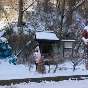 漫步在小镇上,可以看到许多关于鬼怪的雕塑,在不同的季节还有各式各样的祭祀活动。