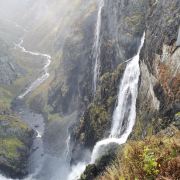 从弗洛姆沿着峡湾走2-3公里,就到了艾于兰。这里有水量丰富的艾于兰斯达伦峡谷和超过1400米高的山峦。小镇上方有一处斯泰格斯坦观景台,从公路旁伸出悬崖30米,悬在650米空中,可以在高处欣赏到艾于兰峡湾的美景。
