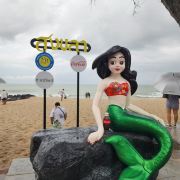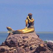 在洁白的沙滩上,还有一座很显眼的青铜制美人鱼雕像,以表达对印度教中大地女神的敬意。另外一个有关这尊雕塑的传说是:这是一名善良的宋卡姑娘,在沙滩上邂逅了一名水手,两人坠入爱河。当姑娘怀了水手的孩子时,水手却再度启航。天真的姑娘深信水手很快就会回来迎娶她,天天都到沙滩等待。年复一年,日复一日,水手始终没有回来。终于有一天,姑娘化成美人鱼铜像,永远守望着撒米拉海滩。