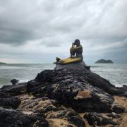 美人鱼铜像旁边是一组“猫和老鼠”雕像,因为宋卡的两座岛屿就分别命名为猫岛(KoYo)和鼠岛(KoLosin)。