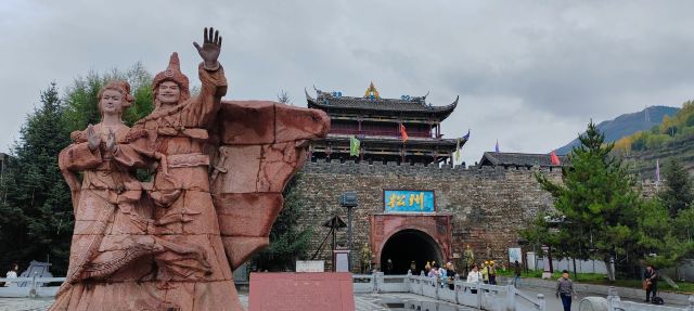 4分 满意黄龙下来,在松潘休息一晚,顺便逛逛松州古城,听说城墙建于明朝,但整个古城感觉就是仿古建筑,差点历史的厚重。城里商业很繁荣,购物、餐饮都不缺,城里广场上有人跳广场舞,非常热闹。城门口有松赞干布和文成公主的雕塑。顺路逛逛还是可以。