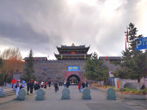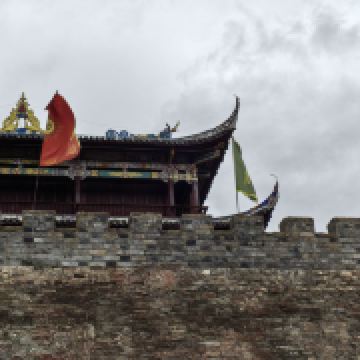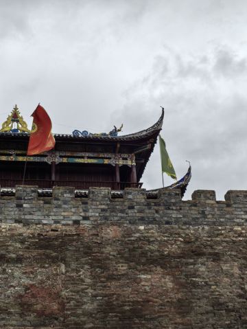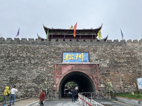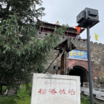 松潘古城古称松州,位于阿坝州东北部的松潘县进安镇,始建于明洪武年间,自古既是川西北地区重要的军事要塞,也是历史悠久的藏、羌、回、汉族人民“茶马互市”的重要驿站。松潘古城古老而安静,你可以步行或者乘坐人力三轮车在古建筑间穿行,寻找时光在这个高原古城留下的印迹,感受古城的厚重和沧桑。更可以登上古城楼,饱览周边的壮丽风光。松潘古城分内外两城,两城之间有城门相通。城墙全长6.2公里,高12.5米,全部以青砖砌成,牢固坚实。其厚度达到12米,堪称全国之。古城有城门7道,东为“松潘古城-觐阳门”、南为“牟尼沟风景区-延薰门”、西为“威远门”、北为“镇羌门”,外城南门称“埠清门”(至今仍保留有完整的瓮城门)、西南山麓有小西门、外城临江有“临江门”。城门上早期建有重檐歇山式城楼,可惜现以损毁。除了现仍留存的四个城门洞,其他城墙皆为2004年重新修建的。各城门顶部皆用条石拱圈,顶部呈半圆形,门基的大石上镂有各种雕图案,别具匠心。临江门旁的石壁上,还镌刻着崇帧十六年(1644年)关于减免苛赋的布告。古城内小桥流水,景观独特,湍急的岷江从古城穿过,由东向西,穿过古城大街后转向南,从南门穿城而出。河面上主要有两座桥比较有名,分别是古松桥和映月桥,历史上都曾被损毁,1986年重建而成。松潘古城还是重要的纪念地,当年在长征途中在此召开过两次重要会议,松潘县川主寺镇元宝山顶至今还留有红军长征纪念碑碑园。