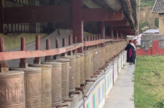 故事是这样子的:我去到时候已经晚上七点多了,但天一点不黑,我们在寺庙外围的院子里逛着,没留意时间,一转头寺庙的门就关上了。我们正表示有点遗憾,这时候遇见一位喇嘛。喇嘛很好人,给我们介绍着寺庙的历史,还重新开门让我们进去参观,一尊一尊佛像给我们介绍。其实川主寺本是一间很普通的小寺庙,但正因为我们遇见了这么一个好人,我感觉我们的旅程完满了。