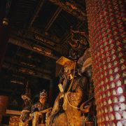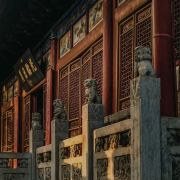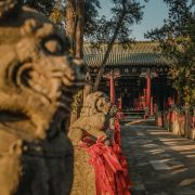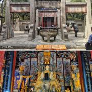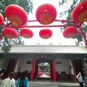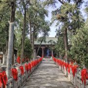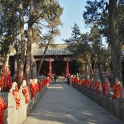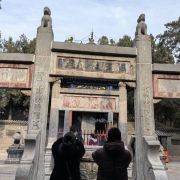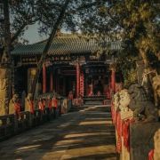 微信小程序在洛阳市城南约7公里的关林庙,规模不大,但是香火极旺,因为这里埋葬着蜀汉名将关羽关二爷的首级(头颅)。根据古代封建礼制,帝王墓为“陵”,王侯将相墓为“冢”,只有圣人的墓才能称为“林”。两千年来,关羽的地位从王侯一直上升到武圣人,能与“关林”相媲美的也只有山东曲阜的孔林。明朝万历二十四年(1596年)在汉代关庙的原址上,开始建庙种植柏树,清朝乾隆年间(1735—1799年)加以扩建,基本形成如今的关林庙的规模。关林庙的建筑规格是按照传统的宫殿式修建的,游客进入关林大门后,步行沿着中轴线向前游览,依次可以看到关林庙的大门、仪门、甬道、拜殿、大殿、二殿、三殿、石坊、八角亭等祠庙部分,在祠庙的后面,就是埋葬着关羽首级的墓冢(地)。当你来到这里,除了拜祭武圣人关二爷之外,还有很多亮点值得你去观赏。明代(修建)仪门上的七七四十九颗门钉和清代(修建)大门上的九九八十一颗门钉,反映了从明代到清代,关羽的地位从王侯级别上升到了帝王级别。当你来到仪门和二殿时,不要忘记抬头看看上面的匾额:“威扬六合”和“光昭日月”两块匾额,分别出自慈禧太后和光绪皇帝之手。当你从仪门走向拜殿时,能看到两边有一百多尊“甬柱顶雕石狮”,小狮子各个圆润生动,一点没有生硬之感,代表了乾隆时间中原石刻的高水平。在大殿和二殿内,还有不少和关羽相关的木刻和雕像,如:桃园三结义、三英战吕布和关羽夜读春秋等。在每年的九月,关林庙将会举办大型国际朝拜盛典,盛典期间来自海内外的朝拜团将会在这里祭拜关圣人;每年的春节期间,它还会举办大型庙会,有时会有民间社火前来助祭,非常热闹。关林庙距离龙门石窟不远,一般游客会一并游玩。