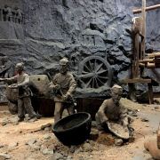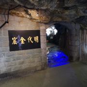 微信小程序遂昌金矿国家矿山公园是遂昌很值得一玩的景点,由于遂昌金矿开采历史悠久,明代还是我国很大的矿银产地之一。以矿山悠久的历史和黄金冶炼过程的神秘特点,吸引了不少游人来此一窥究竟。在这里,可以进行古矿洞探险、更可以做一回矿工,尝尝淘金的甜头。其实光是“黄金之旅”这个主题就足够让人蠢蠢欲动了。进入景区大门后往右走,在风景秀丽的半山腰设有一个小火车的南月台,你可以乘坐黄色的“黄金之旅”号小火车去到明代金矿遗址中,感受当年矿工是如何乘坐矿区运输矿石的小火车进入开采金矿的作业区的,很有意思。小火车在黑暗中行驶大约5分钟,到达矿道内,而后步行游览。这一段是明代的矿洞,隧道两边的墙上用浮雕展示了古时候人们探矿、采矿的情景,你可以亲眼看到古代的采矿现场,了解采矿用的“烧爆法”,连矿难遗址也保留着,让你了解当时开矿的艰辛。古矿洞的尽头有一小段“时光隧道”,把古代采矿区和对面的现代采矿区连接起来,短短几十米就像是穿越了几百年的时光,算是一次特别的体验了。从矿道出来继续往前不远还有一段唐代金窟,可以下到矿道里。不过这一段比较低窄,需要带上安全帽,以免碰伤。离开矿道,往回直奔淘金池。这里的工作人员会把碎金银倒进池子里,游客们蹲在池边拿着小盆子“淘金”(20元半小时),运气好真能淘到些小金子,亲身体验一下当年淘金的场面。游程的最后来到黄金博物馆,整个博物馆的色调就是金灿灿的,一走进去就有种被什么闪到眼睛的感觉。展馆分为两层,一楼有个相当土豪的体验项目“抱金砖”,一块25斤重的大金砖,抱一次10元,自带相机可以免费拍照。有不少人来到这里只是为了抱一抱这块金矿石,讨个发财的好彩头。“抱金砖”旁边便是商店,出售金矿出产的金银制成的金银饰品。二楼则是一些关于黄金知识,以及矿物标本的展览。另外还有矿难模拟室,一个地板是斜的房间,音响制造出矿难的效果,感觉比较逼真。另外,一楼金库大门有荷枪实弹的保安在守卫,金砖抱一抱就好,可不要抱走哦!
