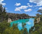 该湖泊位于斯科茨代尔,湖水呈浅蓝色,湖周围岩石绿植环抱,环境优美。