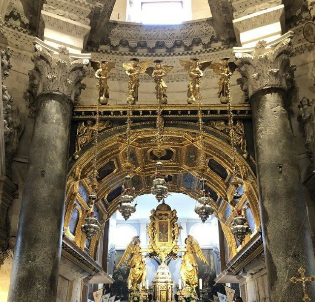 斯普利特主教座堂位于克罗地亚的斯普利特,原先是戴克里先大帝的陵墓,后来改建为教堂,在中世纪的时候建了高约57米的钟楼,成为当地很独特的建筑。钟楼正面有两个罗马石狮子,圆拱顶上是狩猎壁画,是当地著名的地标建筑。