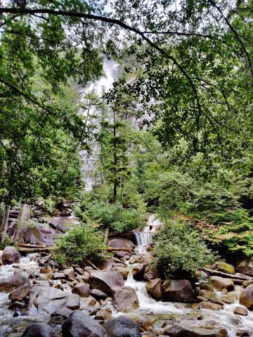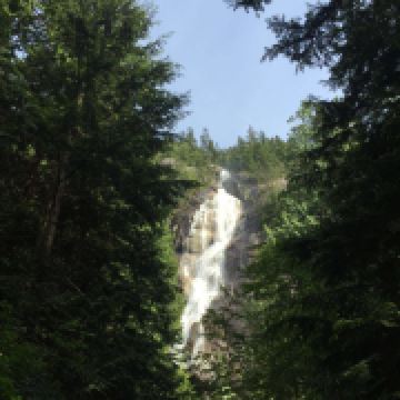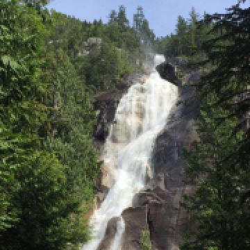香浓瀑布是占地87公顷的Shannon Falls Provincial Park里的主要景点。这里有个350米的轻松简单的徒步道,一路贯穿Shannon Creek两边西部铁杉,花旗松和西部红柏森林,一直到达观景点。这个观景点可以看到壮美的森林和群山,喜欢开阔自然风光的一定会喜欢这里。