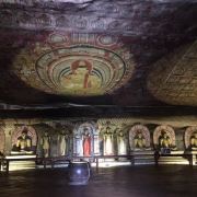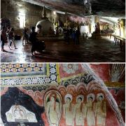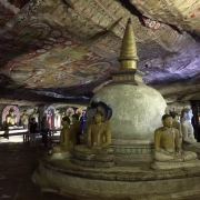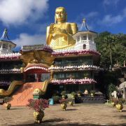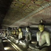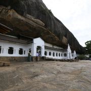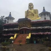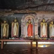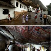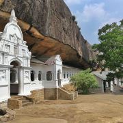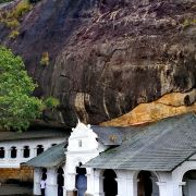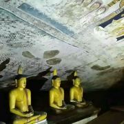 微信小程序丹布勒石窟寺是斯里兰卡有名的佛教寺窟,建于公元前1世纪,坐落于一座石山的斜坡上,整个石窟包括五所圣堂,珍藏着面积达2100平方米的用树汁等原料绘制而成的壁画与157尊雕像,具有很高的宗教艺术价值。