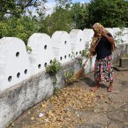 五号洞四周是砖墙,长6.8米,宽12.25米,是比较新的洞。洞里有卧佛,里面还有印度教神明,比如印度教战神穆卢甘和毗湿奴。