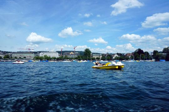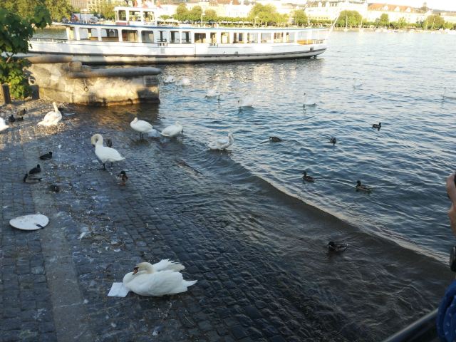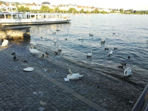 苏黎世湖风景极美,沿河畔筑有中世纪式的卵石小径可供游人在湖边散步,还可游泳、野餐、日光浴和乘船游览湖区。湖里有很多水鸟,湖边还专门立了科普牌子以供人辨认水鸟,天鹅、野鸭等时不时会游到岸边向游人要食吃。