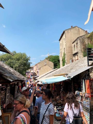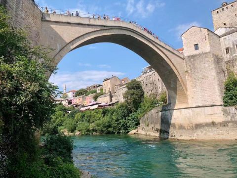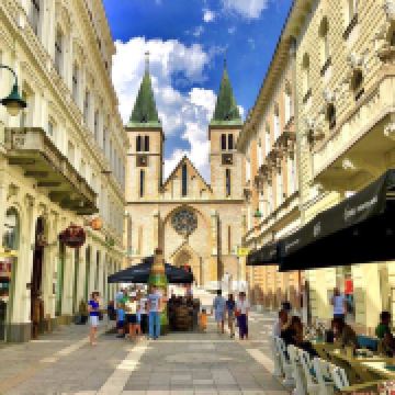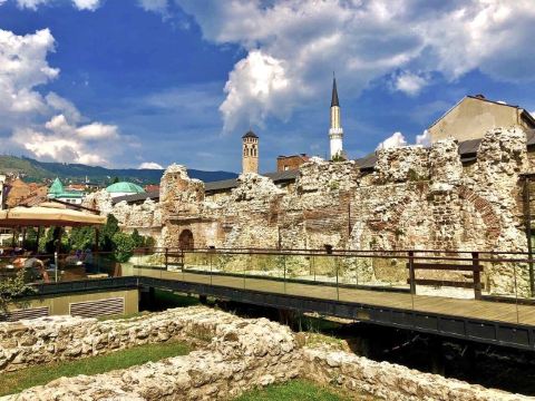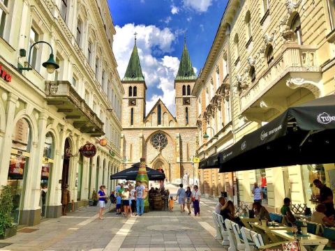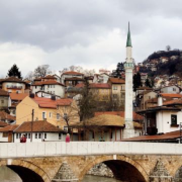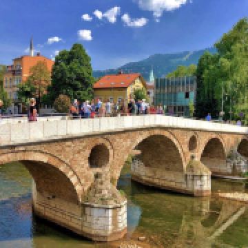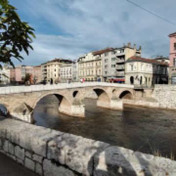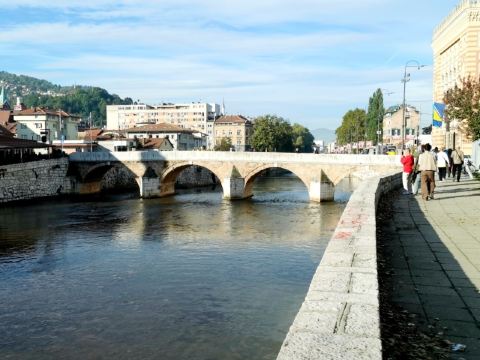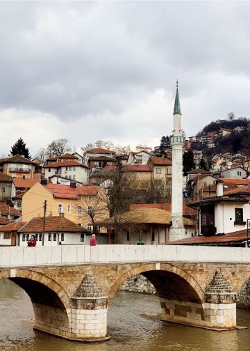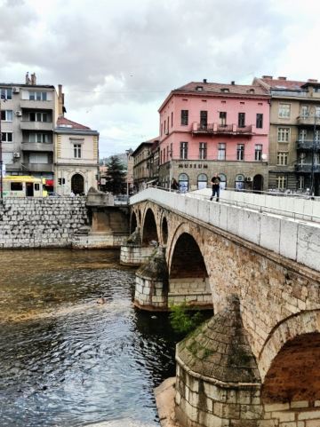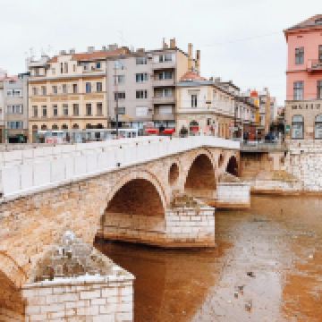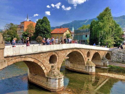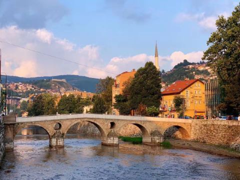 桥梁周边的萨拉热窝老城区充满了波斯尼亚传统风情,游客可以漫步于鹅卵石街道,欣赏周围的历史建筑和风景。