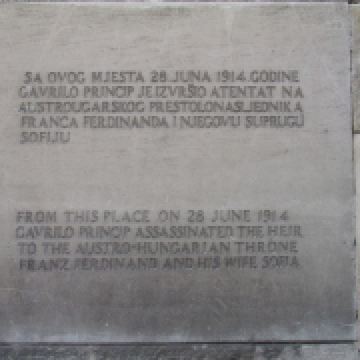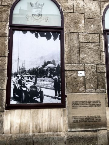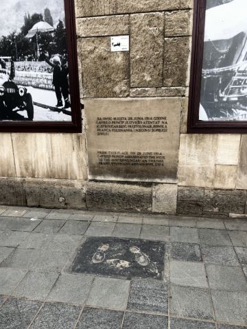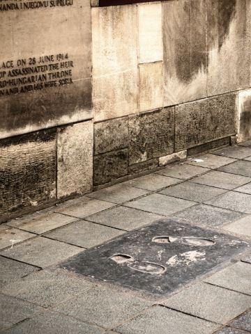 1914年6月28日,波斯尼亚塞尔维亚族青年普林西普就站在那里,开枪打死奥匈帝国皇储斐迪南大公和夫人(所以说出门尽量别两口子一起),直接触发了第一次世界大战。造成超过1200万人丧生2000多万人受伤