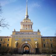 海军总部大厦奠基于1704年,非常引人注目的是一根闪闪发光的镀金长针,高达72米。它被安置在大厦中央阶梯式塔楼的屋顶上,长针直插蓝天,在圣彼得堡的任何地方,都可以看到它。