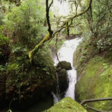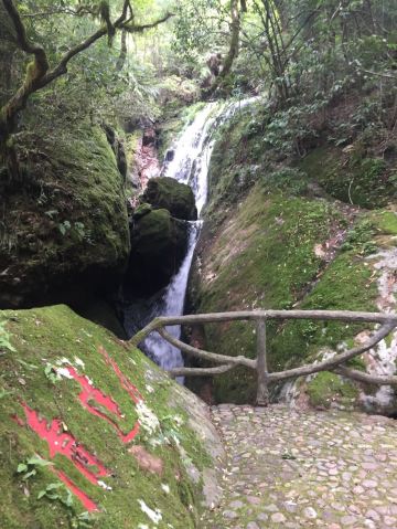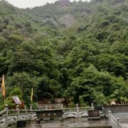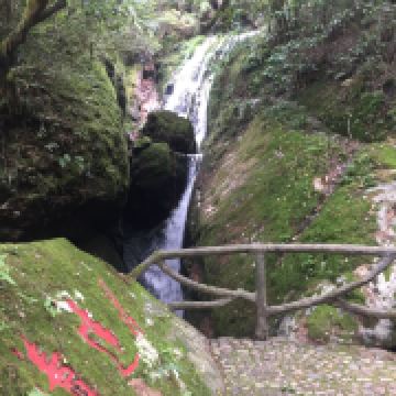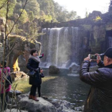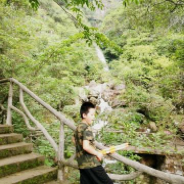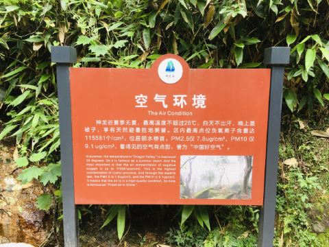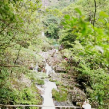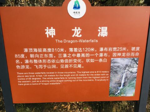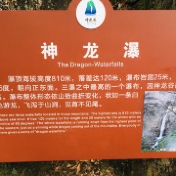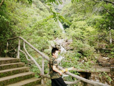 后面的游园惊梦、森林浴吧里有以“牡丹亭”、“长生殿”为名的小亭子,可以休息和拍照,也有茶室可小坐。走到“汤公寻梦”,便是神龙谷精华的“神龙飞瀑”景观了。这条瀑布分为三级,整个落差300多米,谷里山势险峻,远远便能听见瀑声轰鸣。