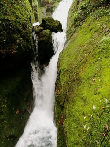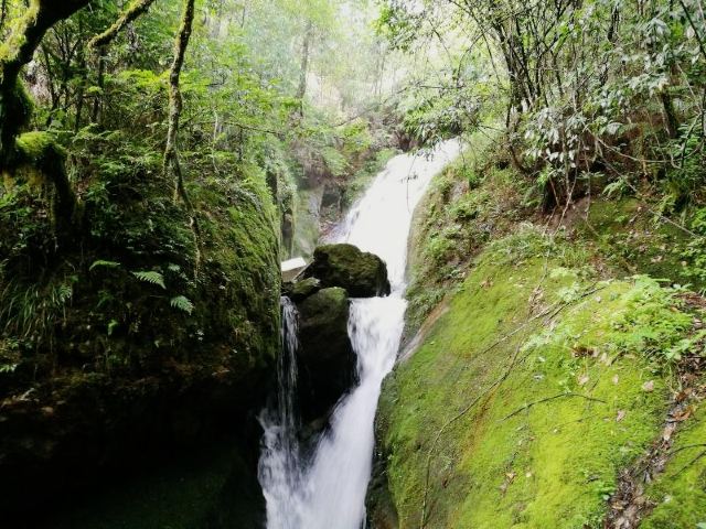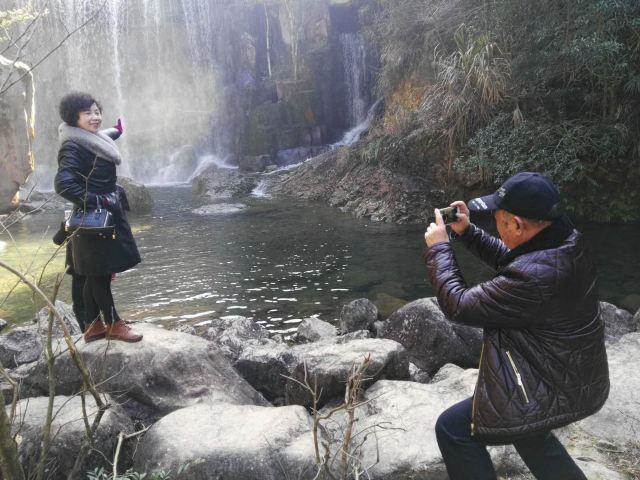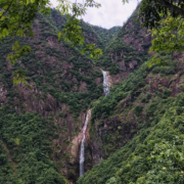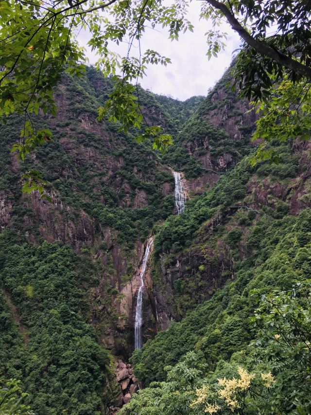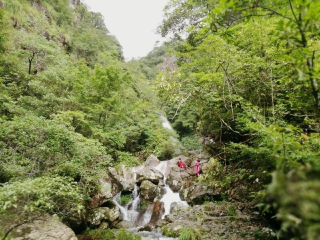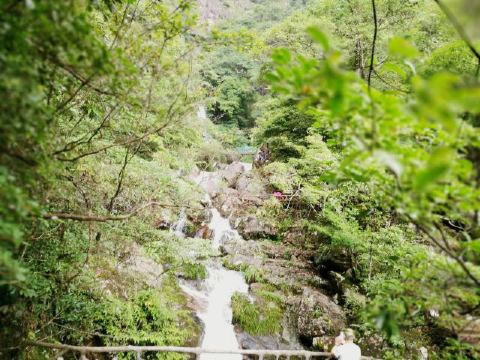 汤公瀑落差60米,后面两级的落差依次增大。瀑布周边的观景台也是以汤显祖的作品为名,南柯台是观景的好地方,能近距离接近瀑布,感受到扑面而来的水汽,夏天很是清凉。继续往前,幻雨台是观看第二级瀑——将军瀑,将军瀑是三级瀑布中较宽的一个。