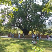 千年古银杏:在洪山禅寺下院前,传说是建寺院时和尚栽种的。树高近30米,树杆粗围8.2米,直径2.61米,冠幅荫笼半亩余,五人环抱树腰还需多加一手。