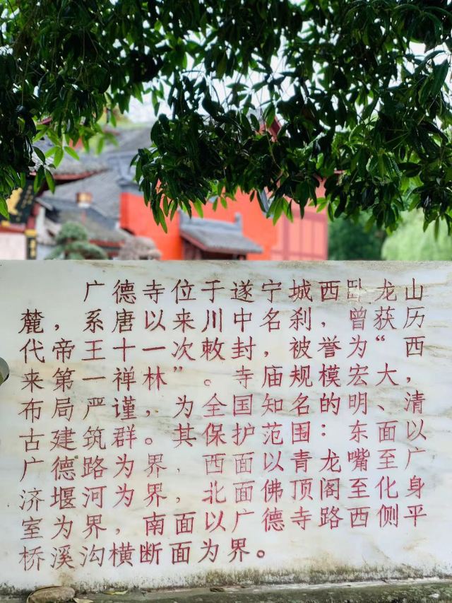 5分 超棒终于来到广德寺啦🥰🥰🥰广德寺为全国重点文物保护单位,中国皇家禅林,位于四川省遂宁市城西三里许的卧龙山。始建于唐,明武宗正德年间敕赐“广德寺”。自唐代宗永泰元年(765)高僧克幽禅师来遂主持开山阐教后,高僧倍出,香火兴盛,遐还闻名。特别是因受唐、宋、明朝十一次敕封,声名大振,明代极盛,僧人千余,曾主领川、黔、滇三百余山被尊为“西来第一禅林”。1300余年来.广德寺历尽沧桑,几度被毁,又数次重建。是受敕封次数最多、更改寺名次数最多的寺院。🌟亮点特色:广德寺有五大镇寺之宝:1、清缅甸国王赠送的玉佛2、明代圣旨坊3、唐塔(济善塔)4、宋碑(九龙碑)5、皇帝御赐玉印(宋赐玉印和明赐玉印)🚗🚘交通攻略:遂宁公交车经过(停靠)广德寺的公交车线路有:12路、旅游1路、旅游3路。🌟1、寺院很大,新建的寺院和古迹都有,事先做好功课2、人少清幽,建筑很美3、寺院里有素食,挺好吃的